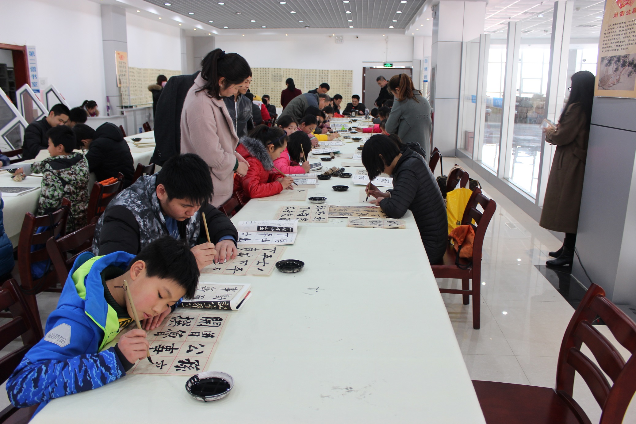本次活动吸引了大约60余名中小学生读者和社会书法爱好者的积极参与,他们认真听讲,积极体验,并现场展示了书法作品。