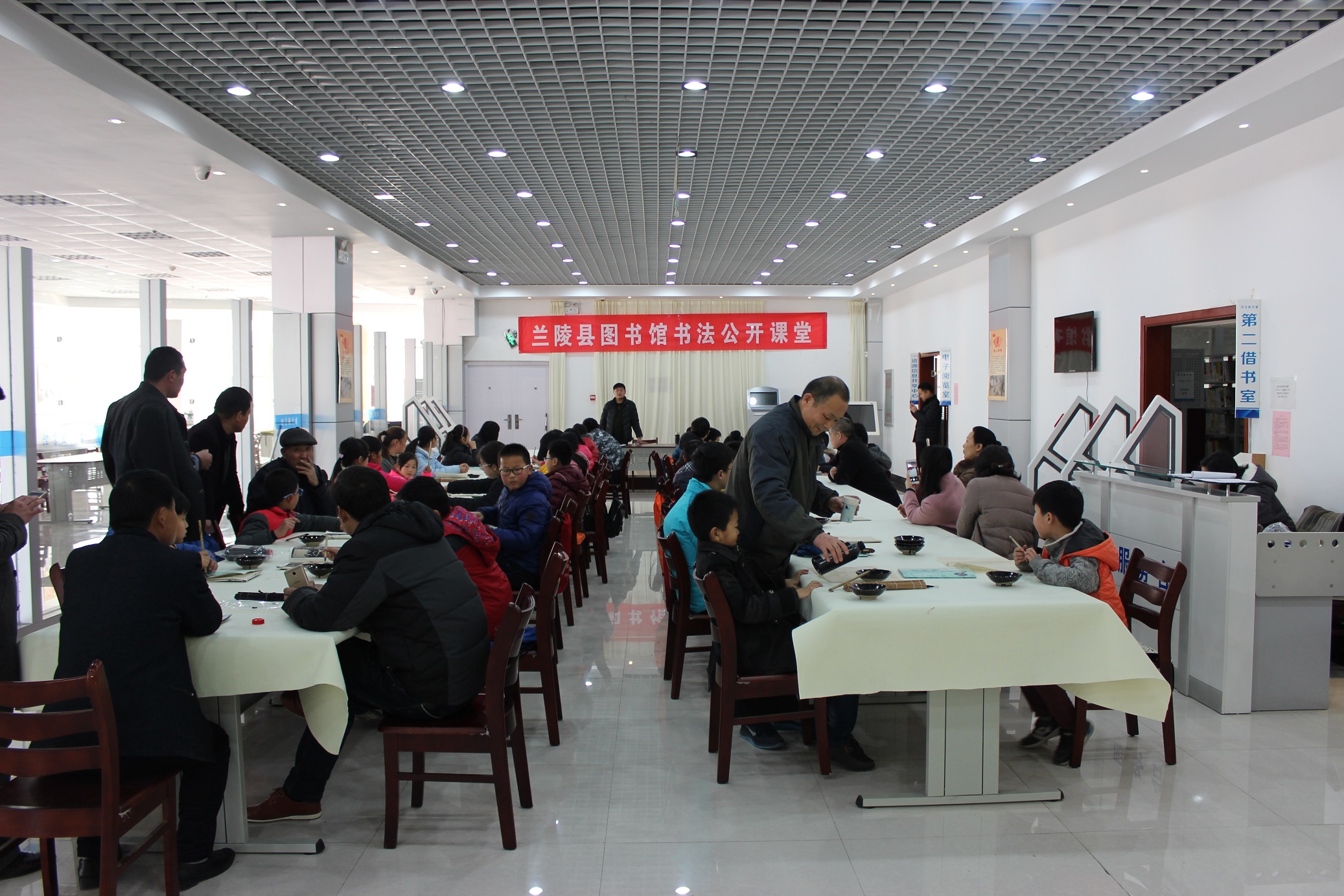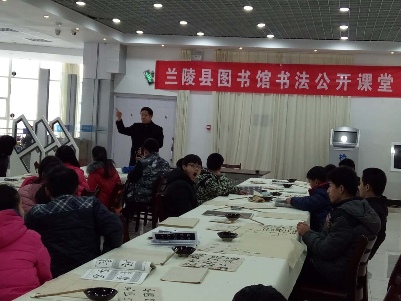 “读好书,写好字”是对广大中小学生的基本要求。为继承我县的书法传统,引导我县广大读者和中小学生更好地学习书法,培养其艺术鉴赏能力,进一步加强读者对书法的认知,鼓励读者对传统文化进行深入体验,兰陵县图书馆于2月18日下午了举办“书法公开课”讲座活动,活动邀请了中国书法协会会员,兰陵县图书馆理事会理事,兰陵六艺书院院长、教学主持孙合玉老师作为主讲,兰陵县书法家协会副主席吴金华先生到现场并进行了热情洋溢的讲话。