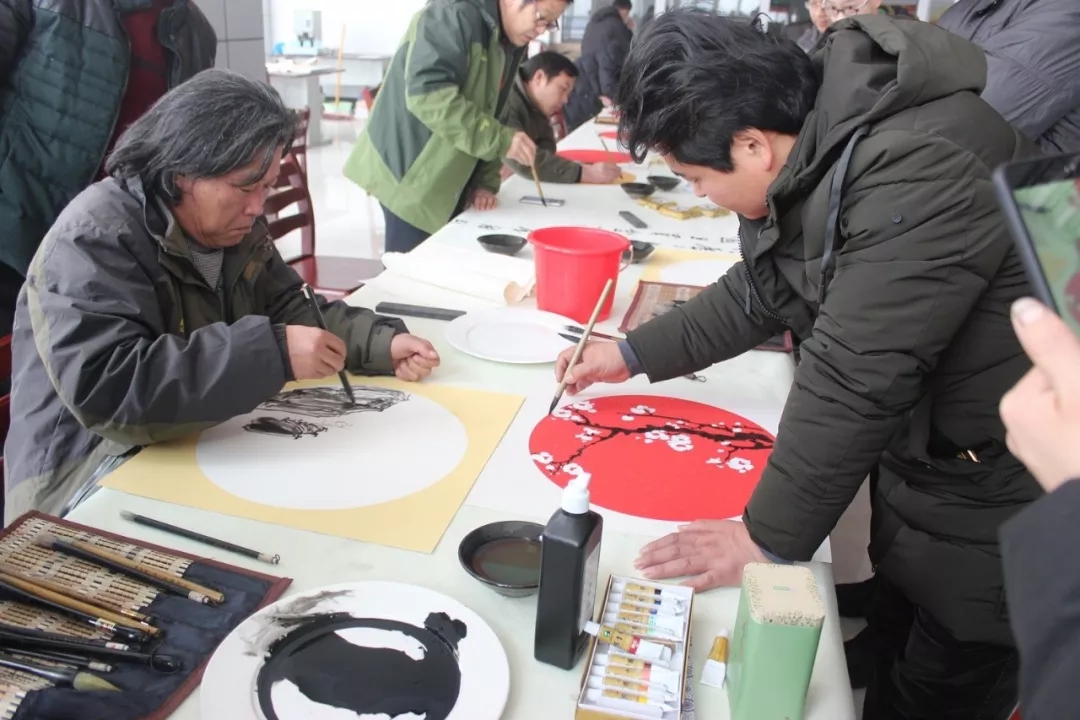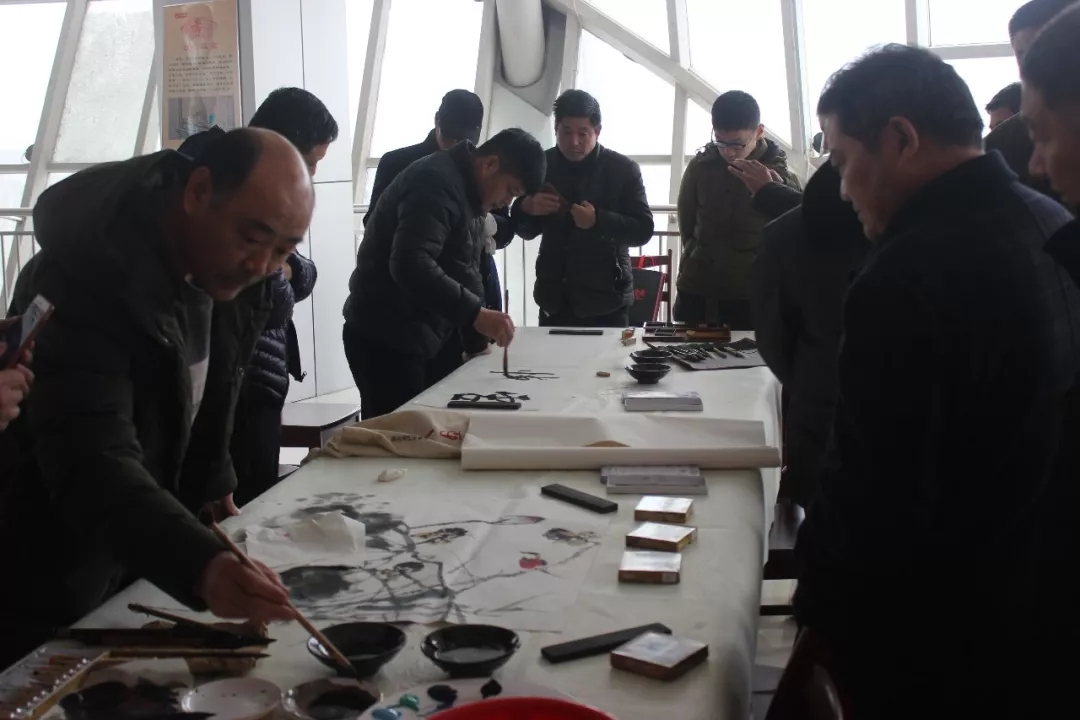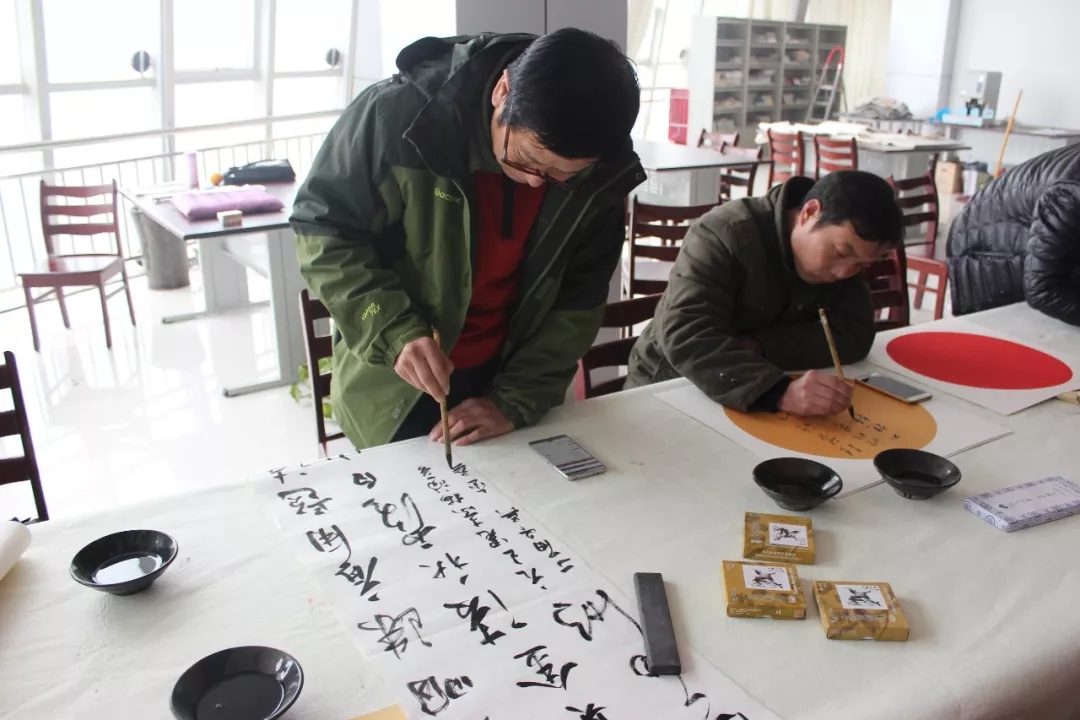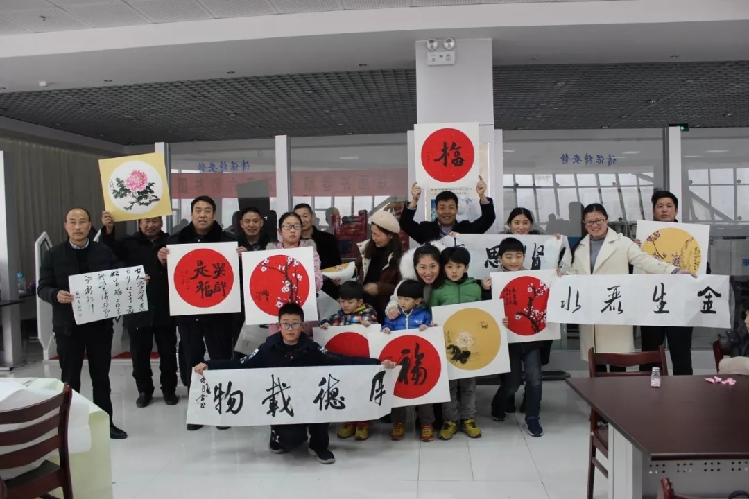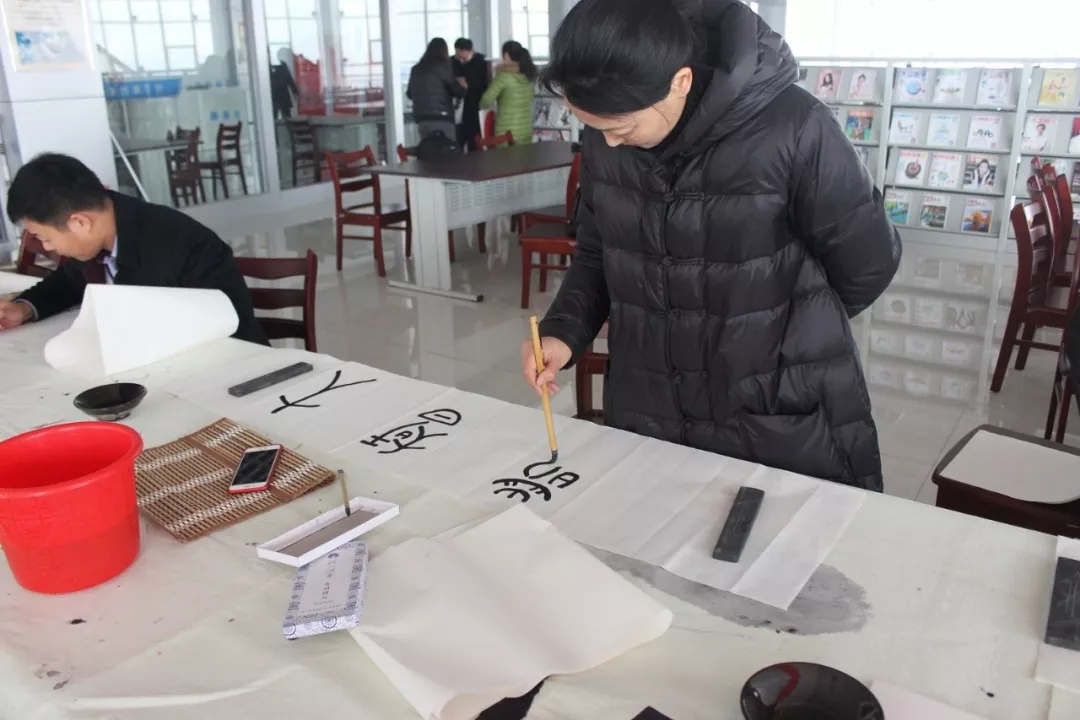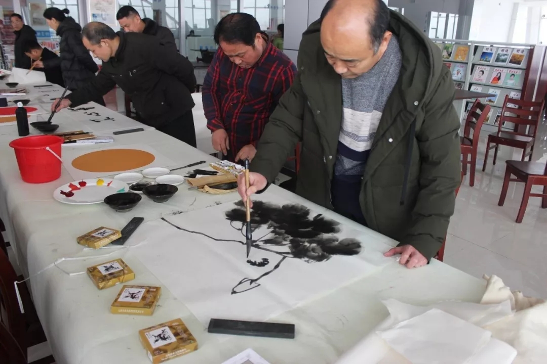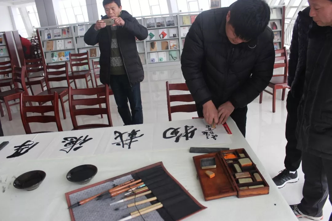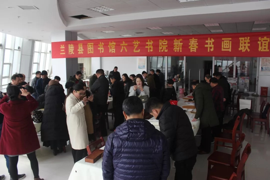 1月21日下午,兰陵县图书馆为活跃节日气氛,全面落实党的十九大会议精神,进一步提升社会服务智能,服务广大读者,特联合六艺书院举办了新春书画联谊活动。 本次活动共邀请我县知名书画家近二十人,吸引读者及书画爱好者近百人。书画家创作激情高涨,现场气氛热烈,共创作书法、国画作品百余幅,广大读者不仅近距离感受了书画创作现场,而且每人都得到了书画家馈赠的墨宝。本次活动的开展,为节日增添了祥和喜庆的气氛,为我县传统文化的普及发挥了积极的推动作用,收到良好的效果。