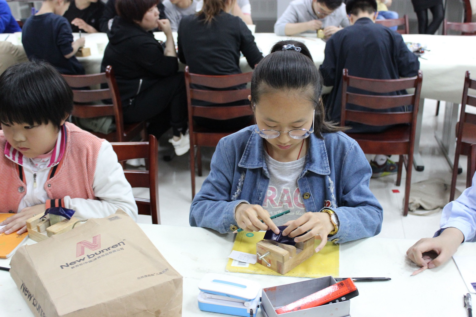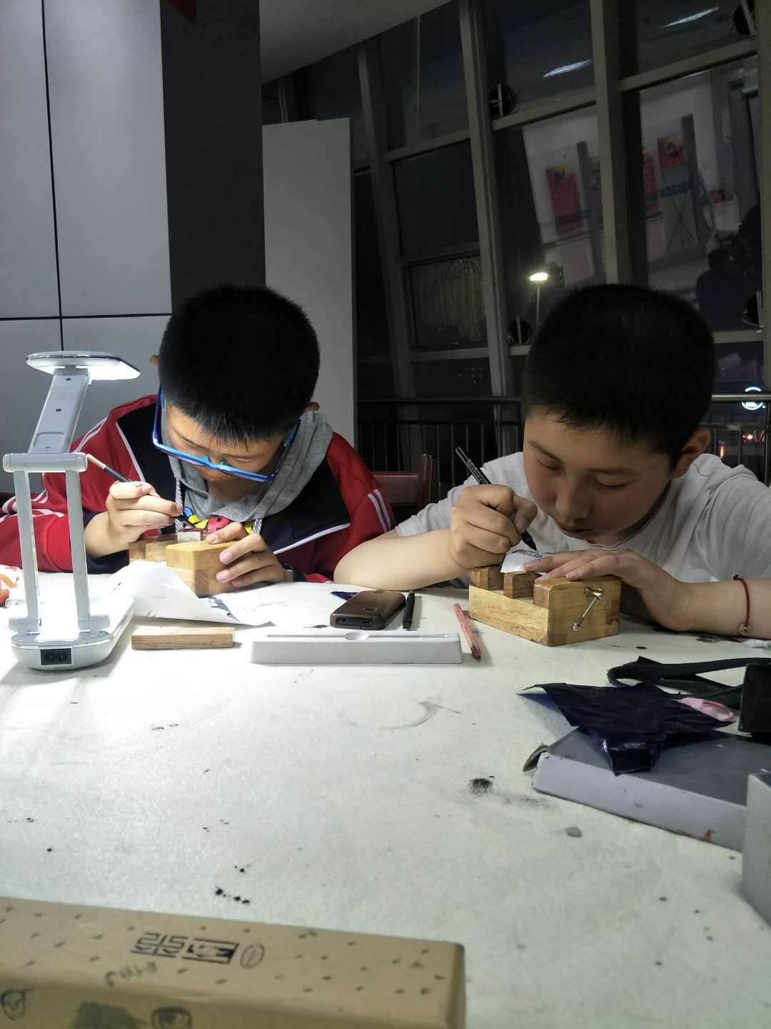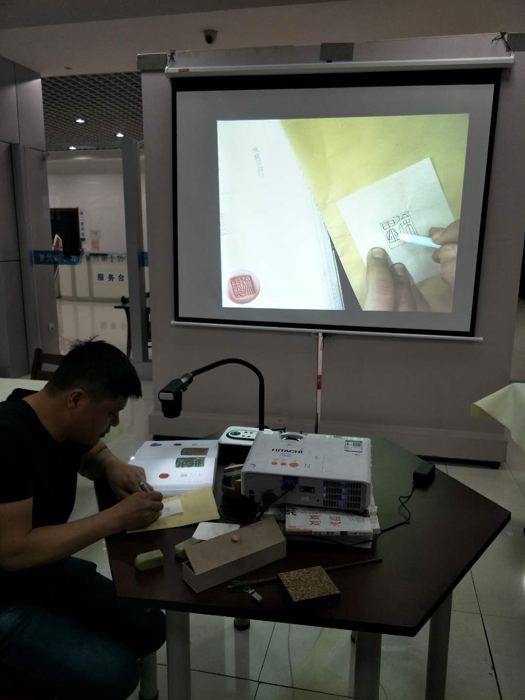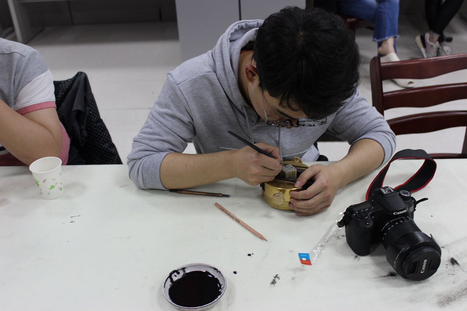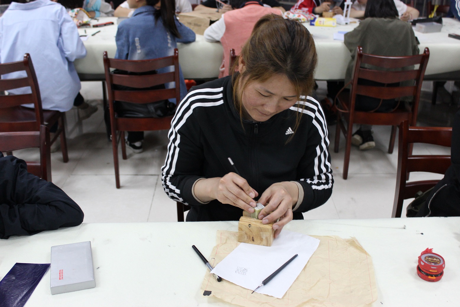 学生篆刻中