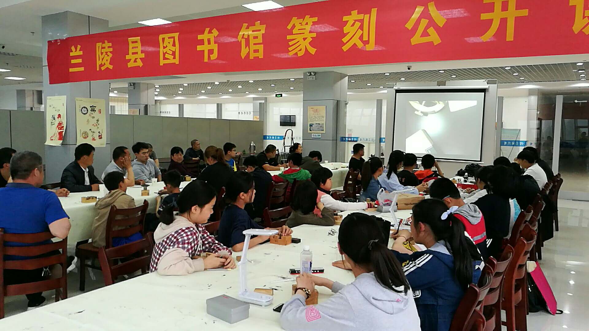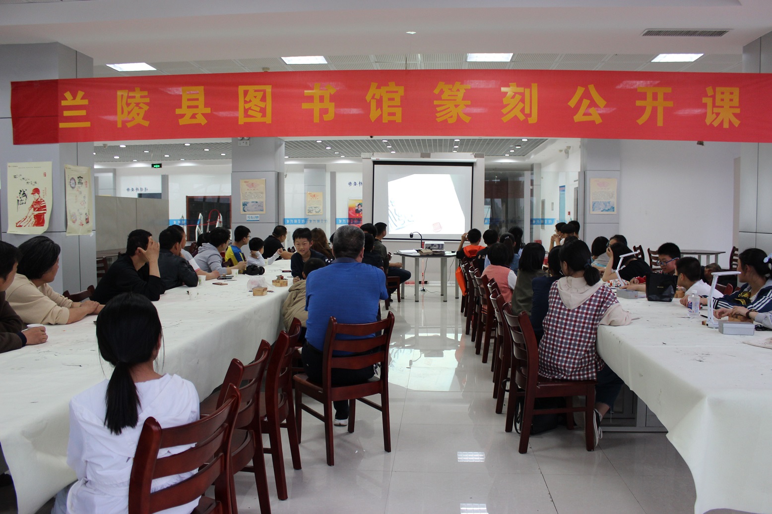 兰陵县篆刻公益讲座于5月12日晚在兰陵县图书馆举行。篆刻艺术是我国传统文化的瑰宝,有着三千年的历史,与诗词、书法、绘画并称为“诗书画印”,有着极高的艺术地位和欣赏价值,为了传承篆刻艺术,让广大群众认识篆刻之美,体验篆刻乐趣,兰陵县图书馆邀请了中国书协会员、六艺书院院长孙合玉老师开展了篆刻公益讲座。本次讲座由兰陵县图书馆副馆长王荣主持,县书画院院长王荣山、著名画家王立鹤等出席,来自我县的篆刻爱好者和中小学生五十余人参加了讲座。