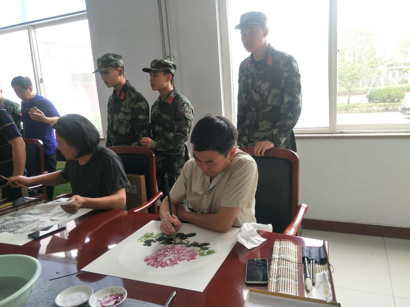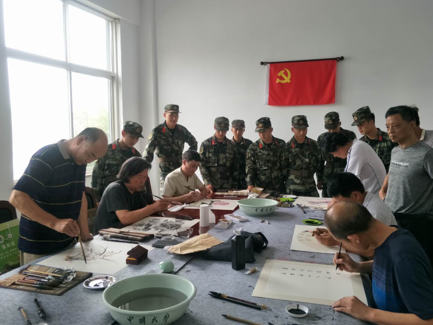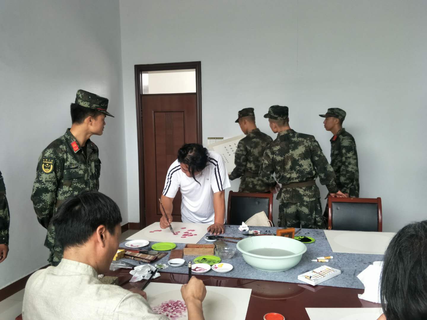 书画家和武警官兵进行书画创作交流,通过观摩学习,提高书画创作技艺,增进军民鱼水之情。