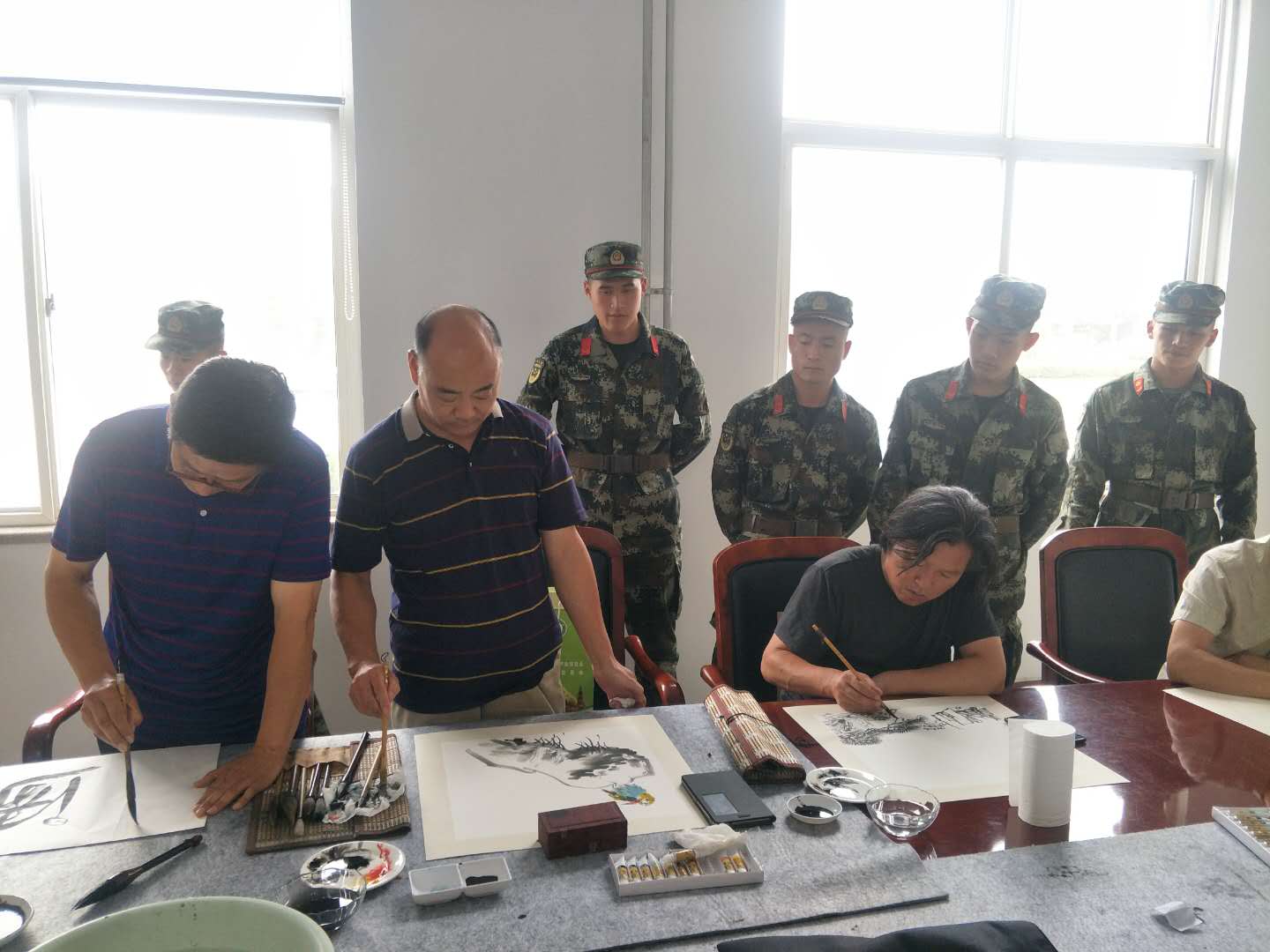 六月十八日是中华民族传统节日——端午节,为丰富部队文化生活,10余兰陵名书画家与武警中队的官兵们进行了书画交流活动,书画家们和武警官兵一起,满怀激情挥毫泼墨,即兴进行书画创作及交流活动。