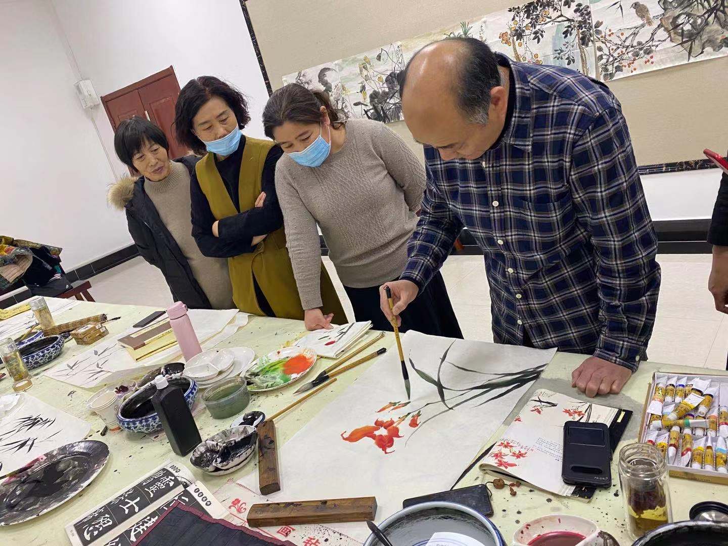 这一期活动是王院长的美术课,书画老师和书画爱好者们相互交流绘画技巧,王院长亲自作画示范让大家观摩和欣赏;大家不但对书画作品的画里画外创作过程增进了解和理解,也到了中华传统文化艺术的熏陶,