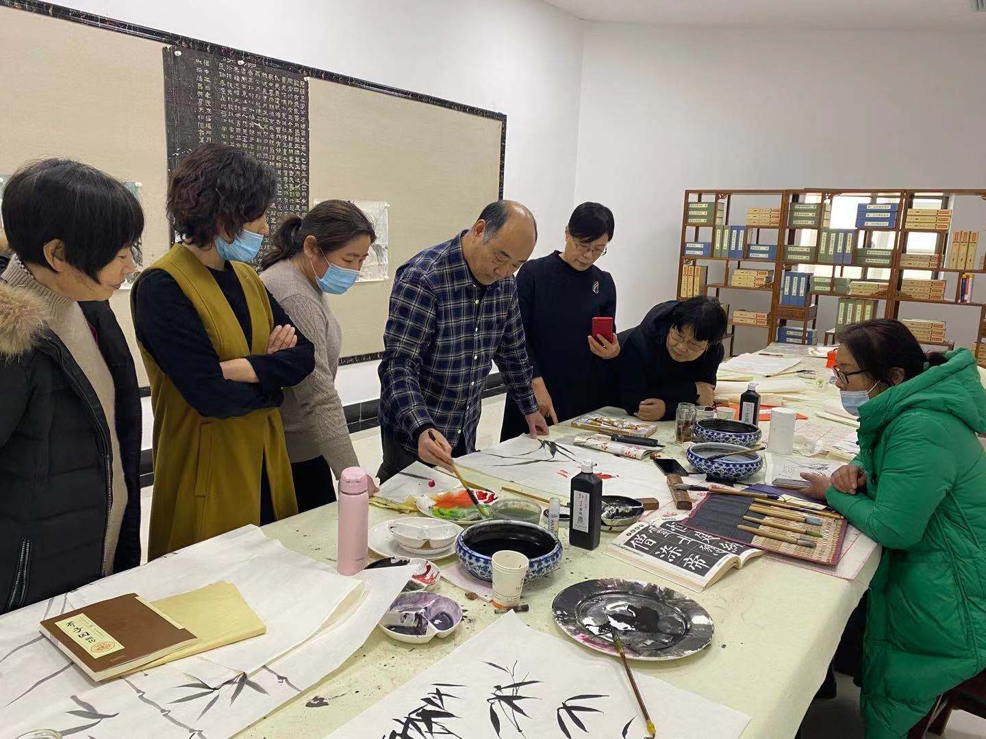 12月20日下午,兰陵县图书馆在尼山书院三楼书画体验室组织举办了第九期书画沙龙活动。活动邀请了兰陵县书画院院长王荣山(中国工笔画协会会员、山东省美协会员、书画院院长)、知名书法家孙合玉老师(中书协会员)进行现场授课。