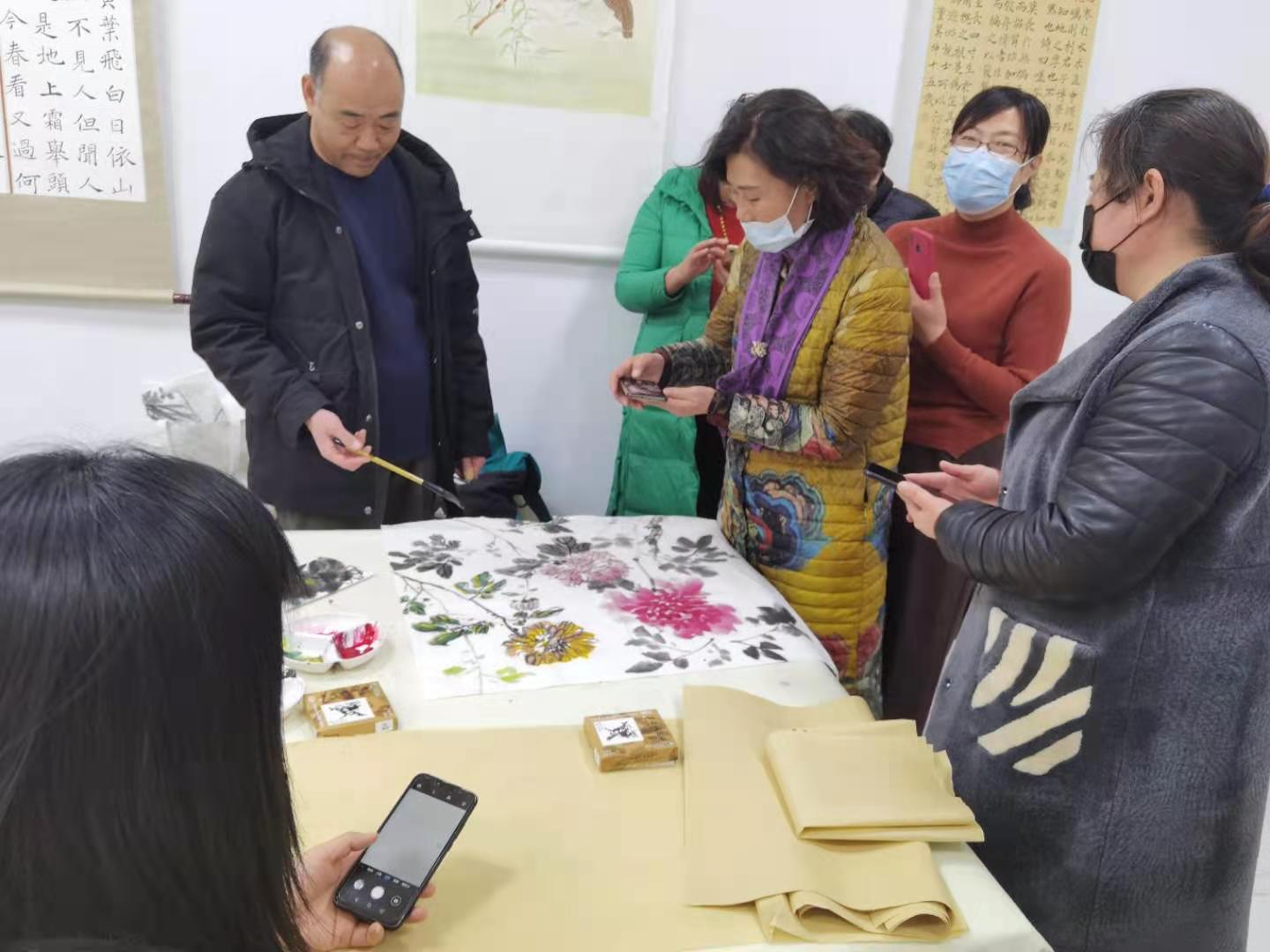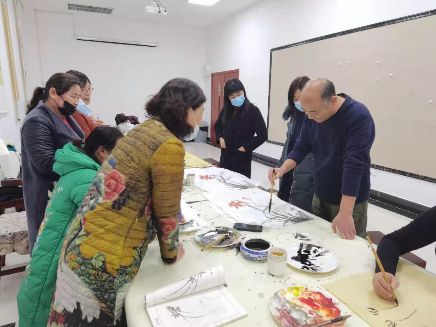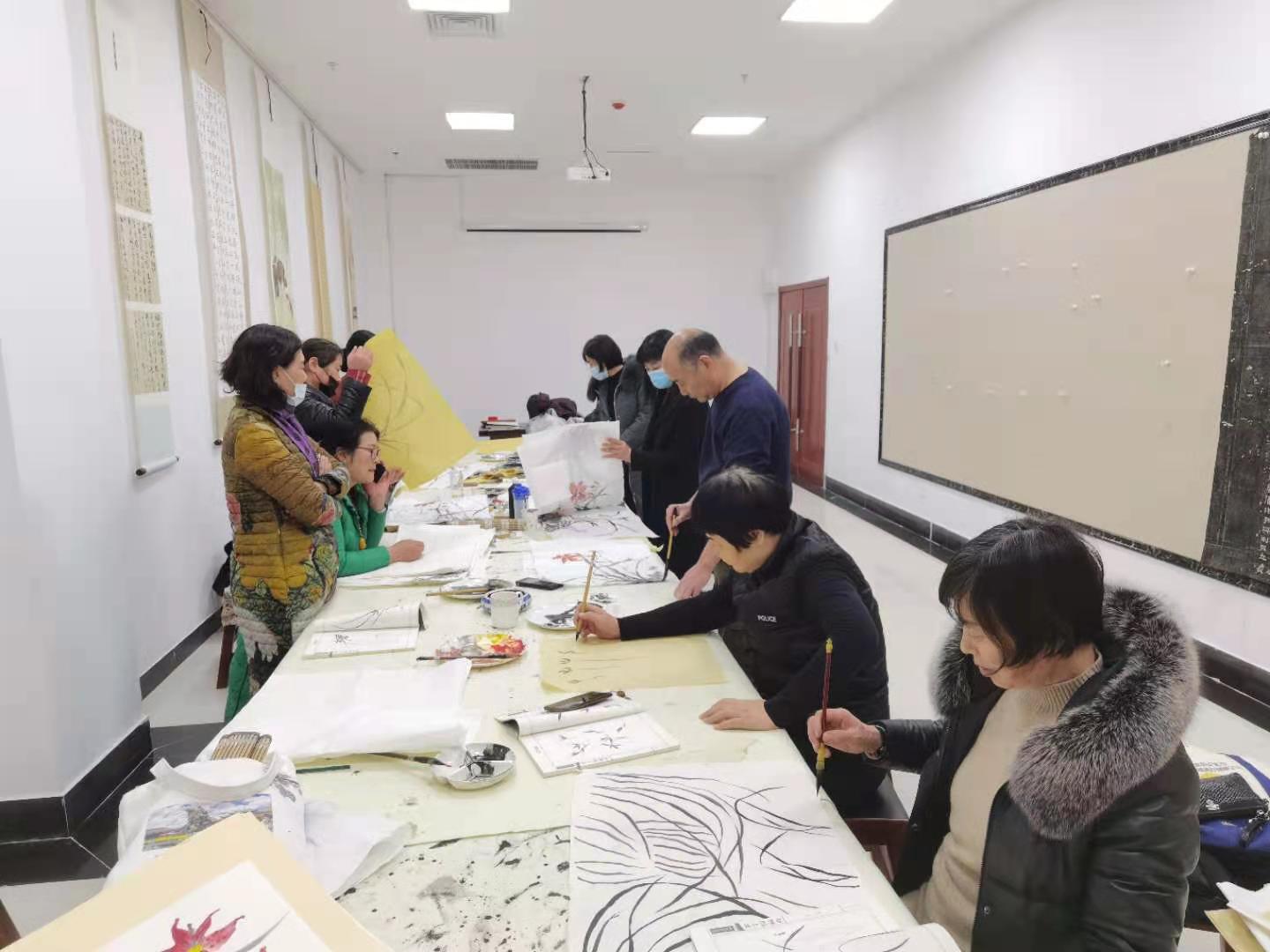 这一期活动是王院长的美术课,活动绘画的主题是菊花。王院长亲自作画示范让大家观摩和欣赏,在完成作品的同时,又一笔一划的讲解,增进大家对书画作品画里画外创作过程的了解和理解;同时书画老师和书画爱好者们相互交流绘画技巧,感受中国传统文化的书画灵动空间。