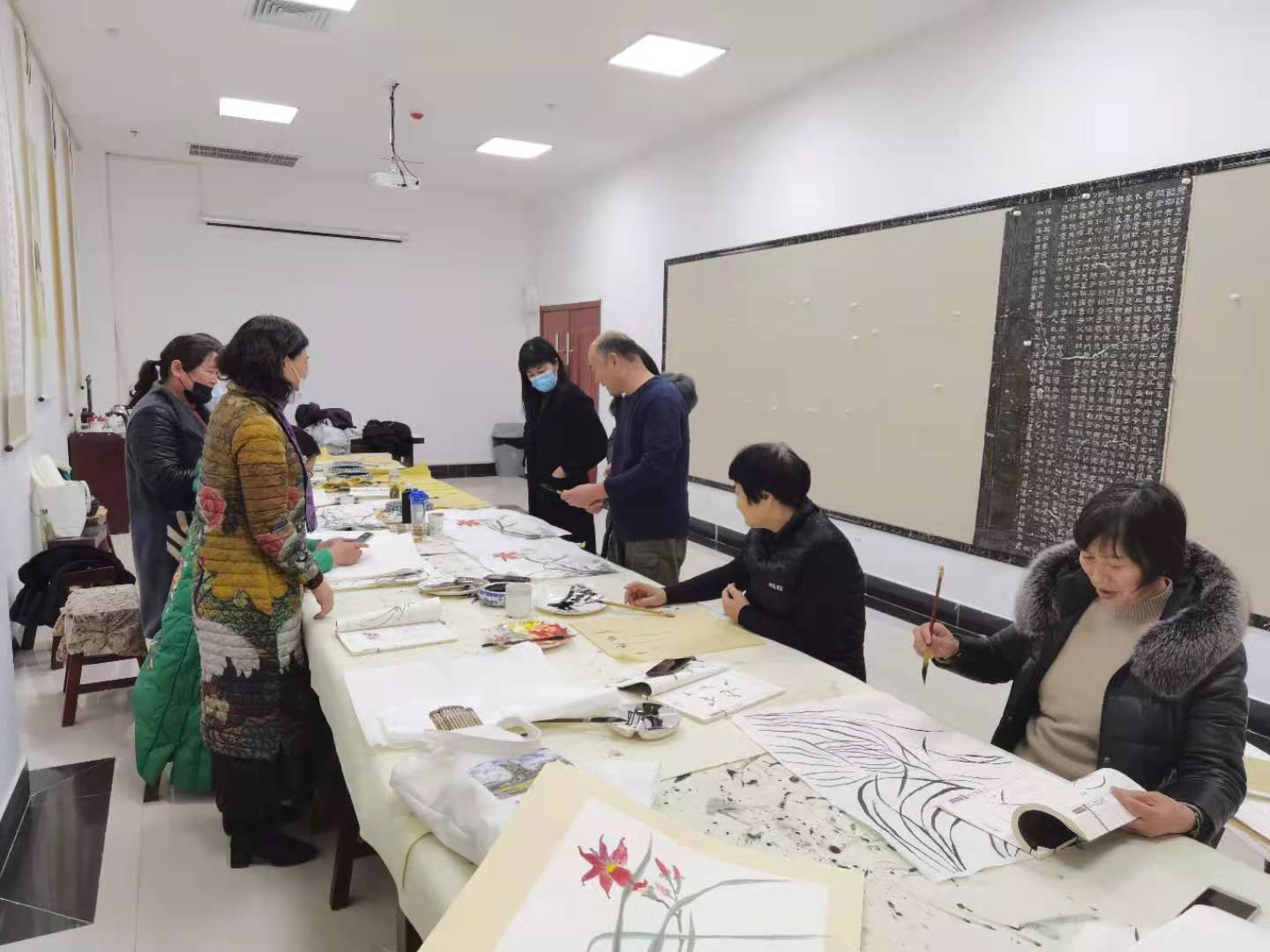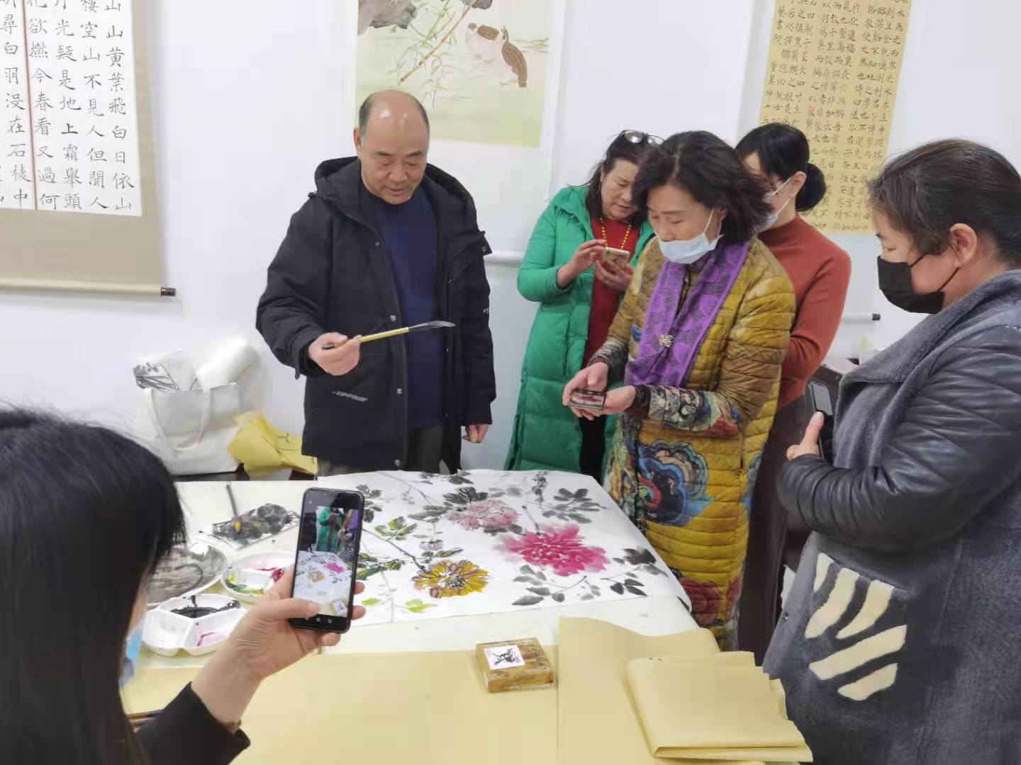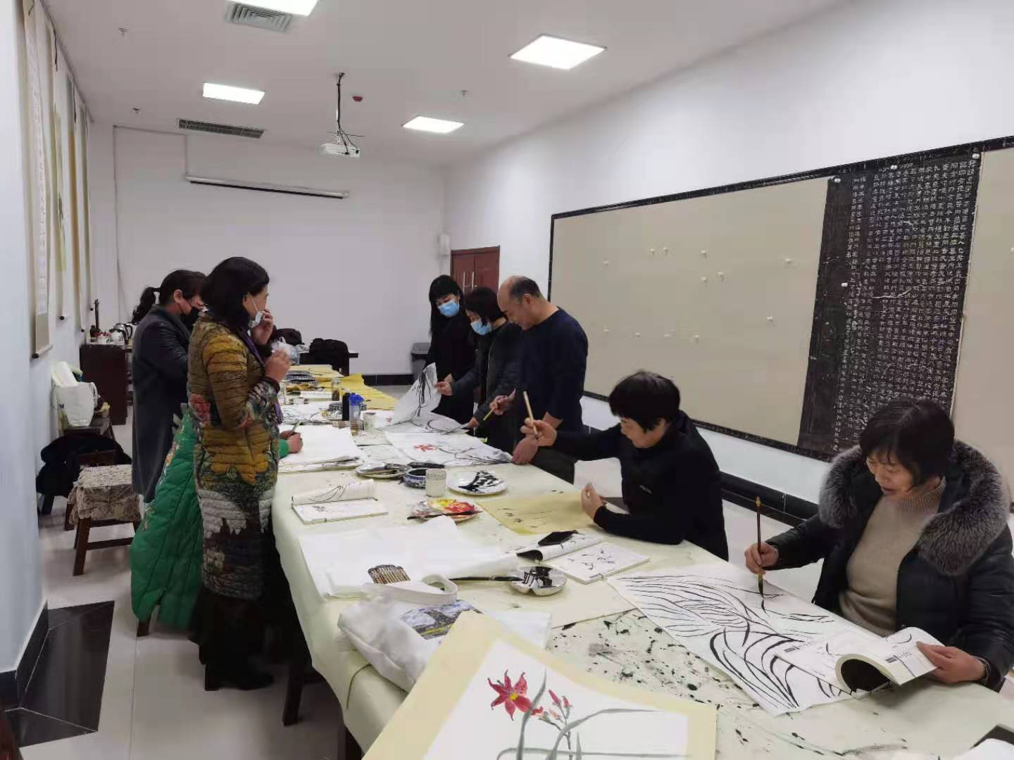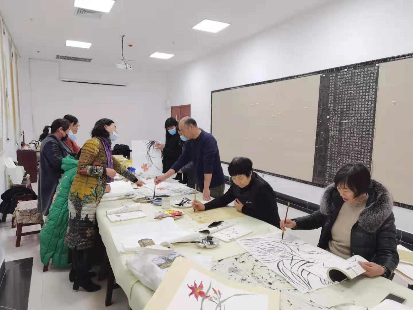 这一期活动是王院长的美术课,活动绘画的主题是菊花。王院长亲自作画示范让大家观摩和欣赏,在完成作品的同时,又一笔一划的讲解,增进大家对书画作品画里画外创作过程的了解和理解;同时书画老师和书画爱好者们相互交流绘画技巧,感受中国传统文化的书画灵动空间。