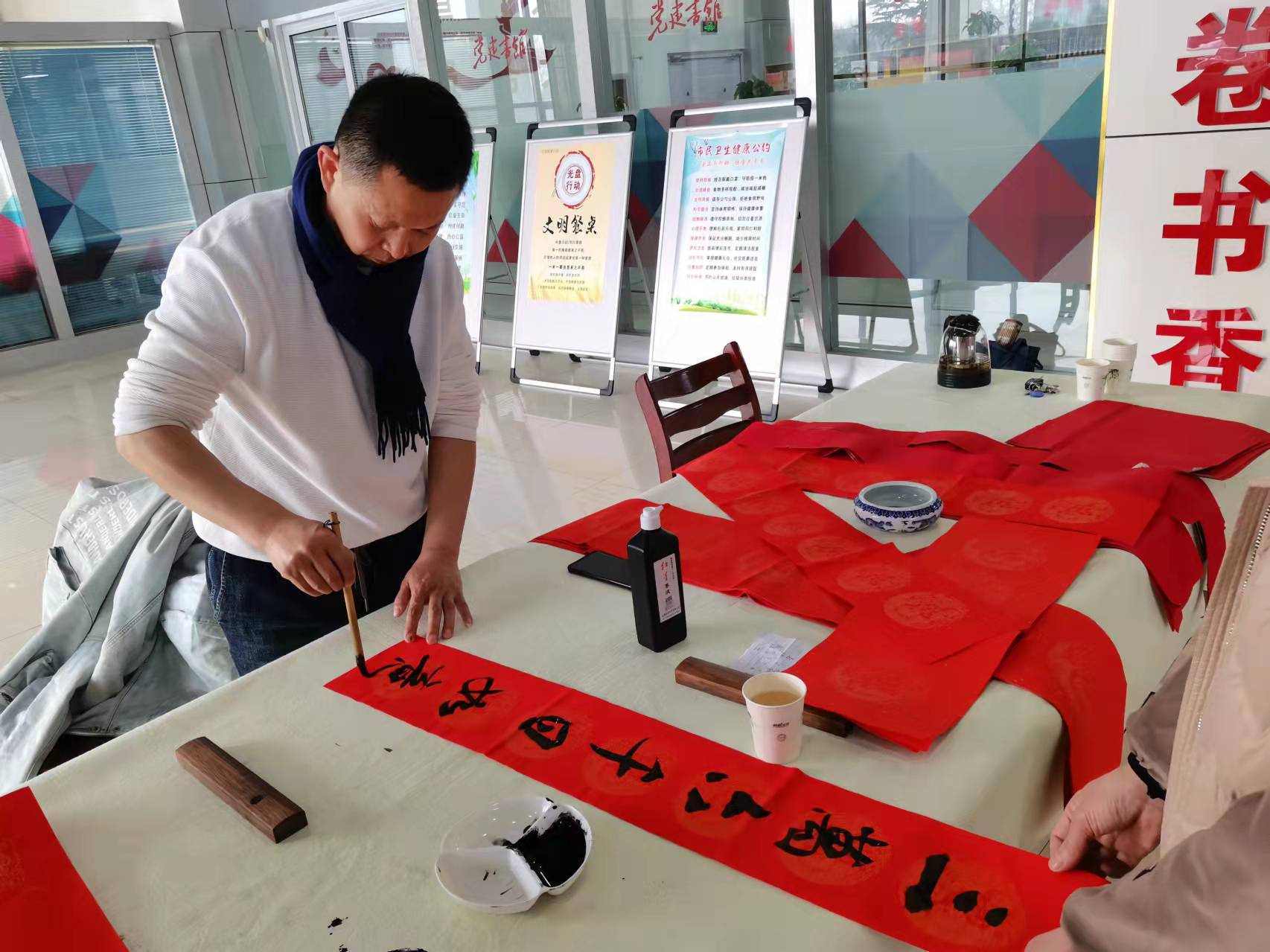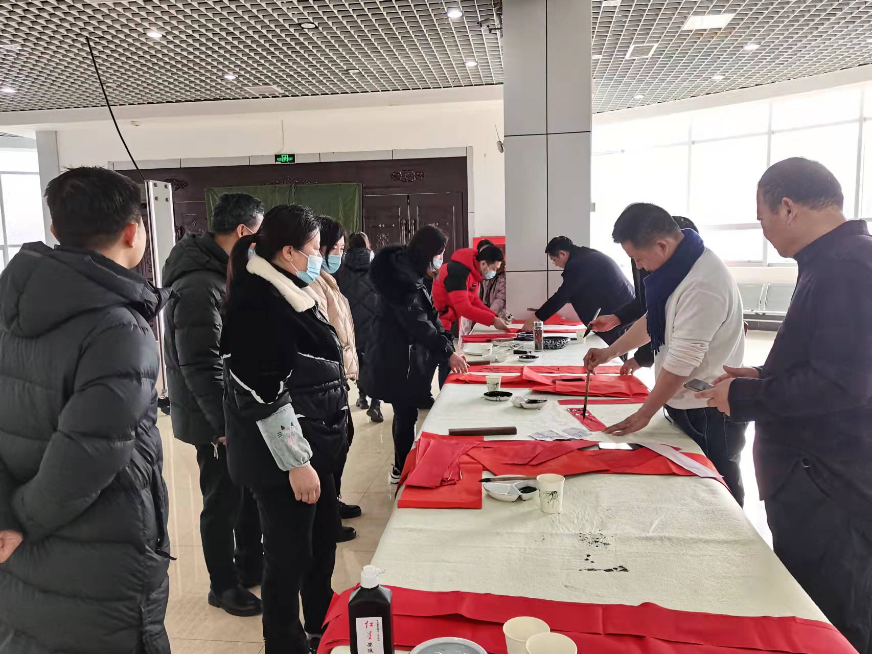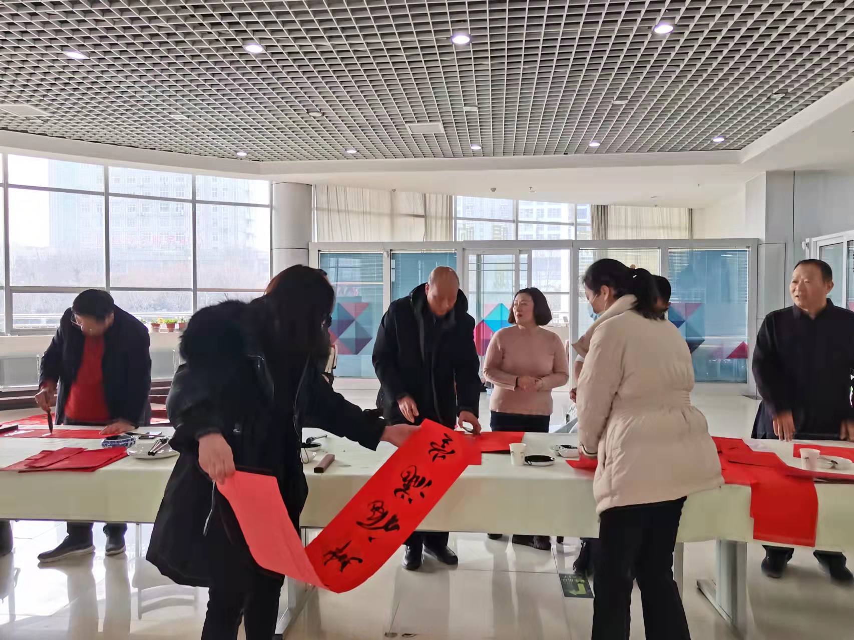 “千山万家春 绿拂阖家欢”“春催杨柳绿 花放山河新”……书法家现场书写春联百余副,给广大群众送去节日的祝福,为即将到来的春节增添了浓郁的喜庆氛围。