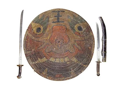 青铜质、铁质等材质的盾牌