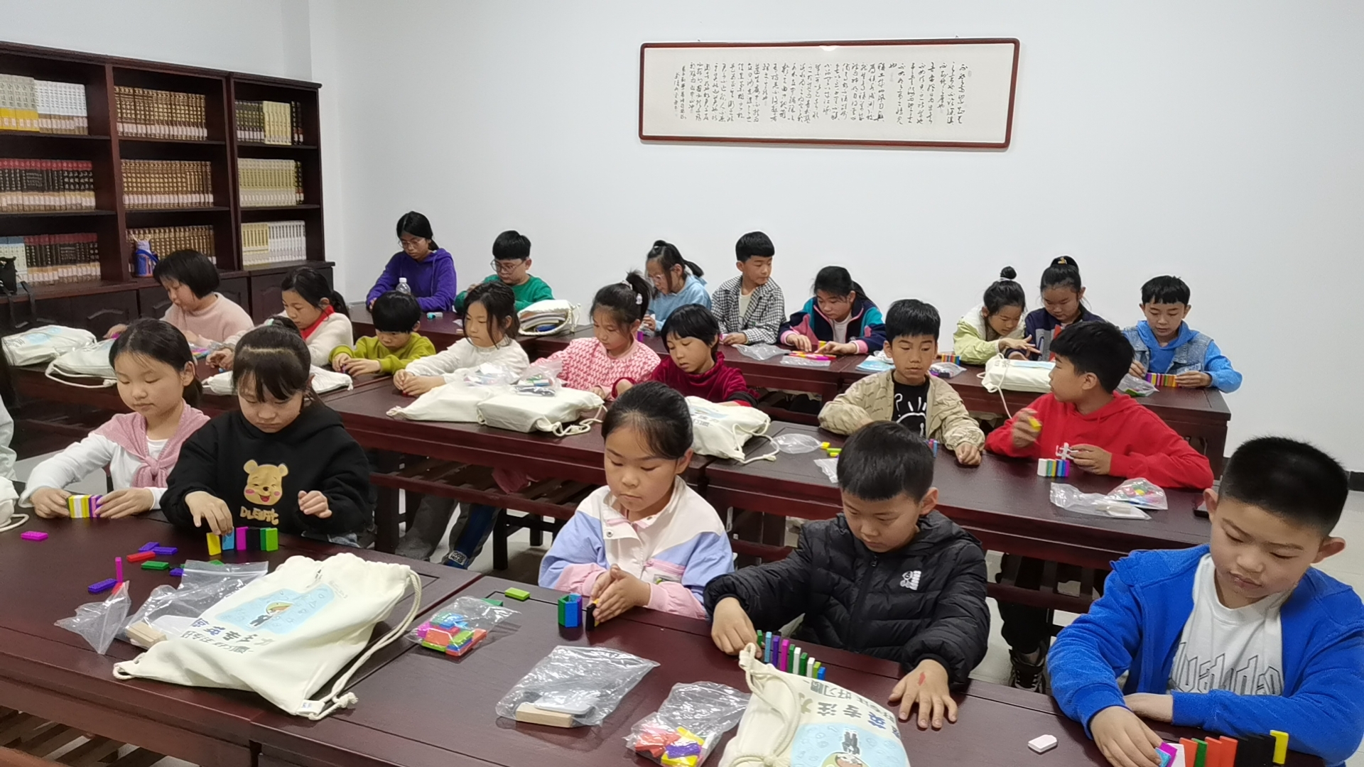 老师带领孩子们通过益智游戏进行专注力训练