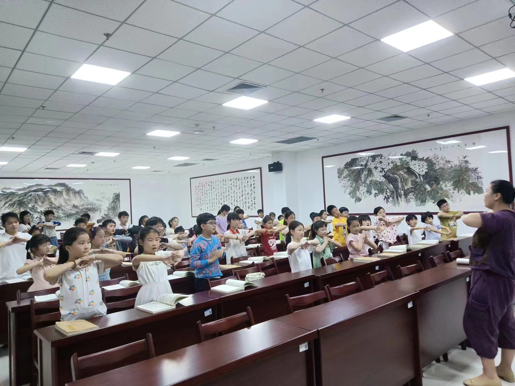 5月20日,兰陵县图书馆联合翰林苑国学堂在三楼国学大讲堂开展了第十一期“经典诵读”阅读公益活动,共有约50名青少年读者及家长朋友参与本次活动。