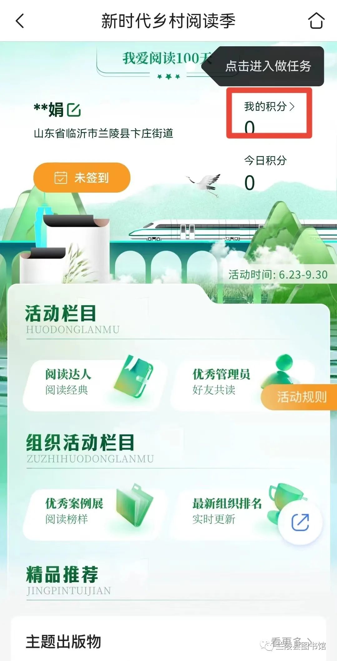 活动积分计算时间为6月23日-9月30日。其他时间用户仍可登录平台,享受相关阅读服务。