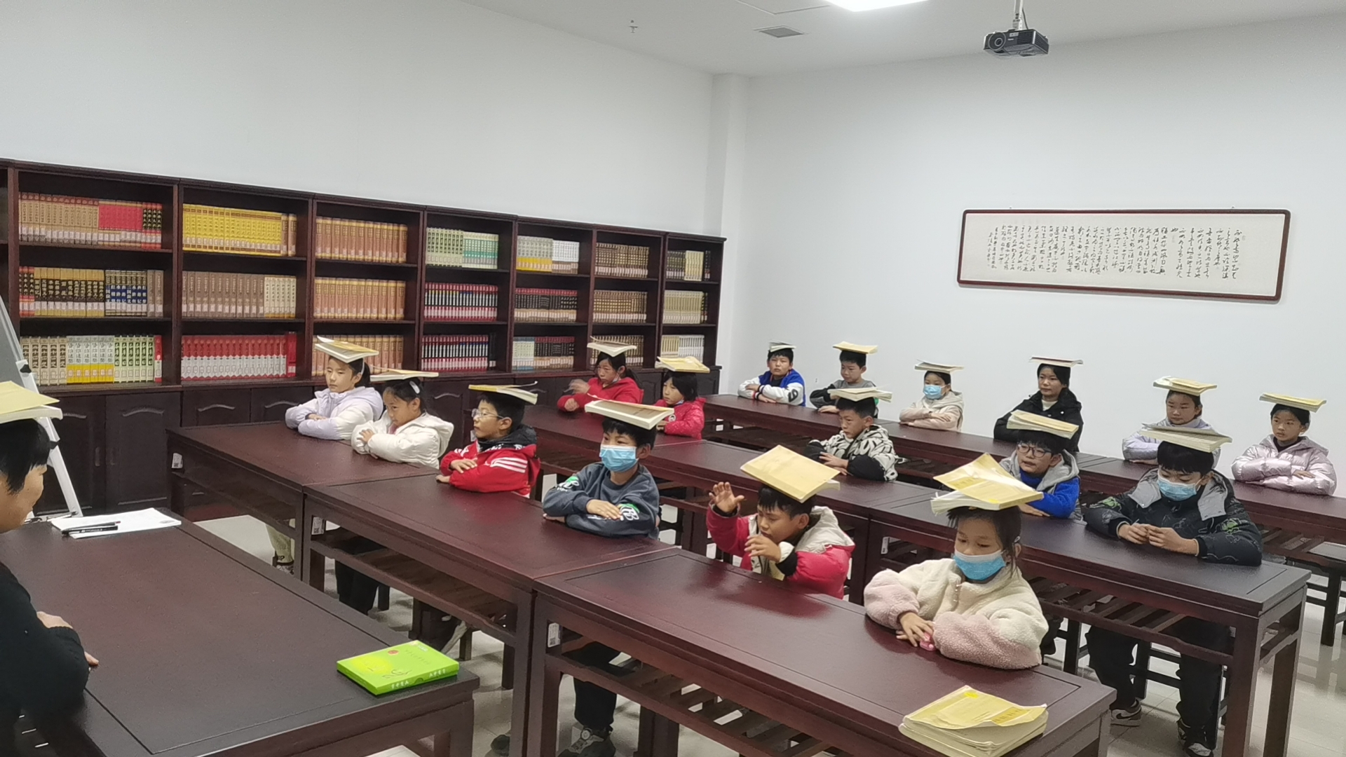 每次的诵读活动都会有五分钟的顶书静心环节。