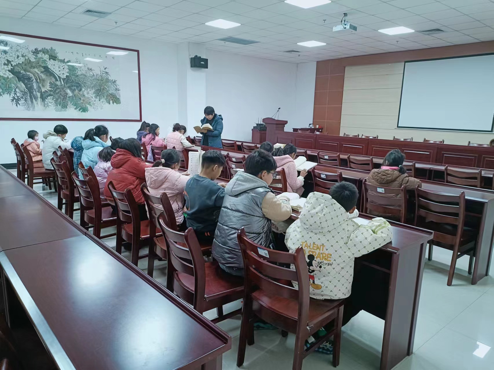 12月16日上午,兰陵县图书馆联合翰林苑国学堂在三楼国学大讲堂开展了第三十二期“经典诵读”阅读公益活动,共有40余名少儿读者及家长朋友参与本次活动。