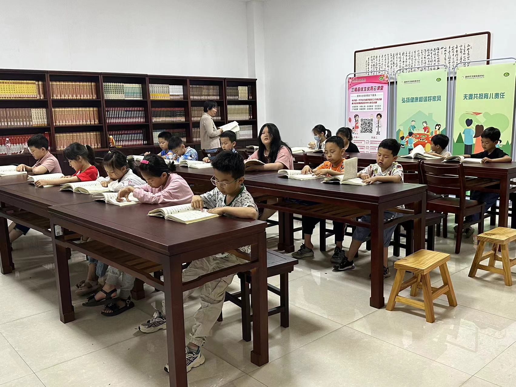 6月1日儿童节当天,兰陵县图书馆联合翰林苑国学堂在三楼国学阅览室,开展了第十三期“知行”周末经典诵读公益活动,共有30余名少儿读者参与本次活动。